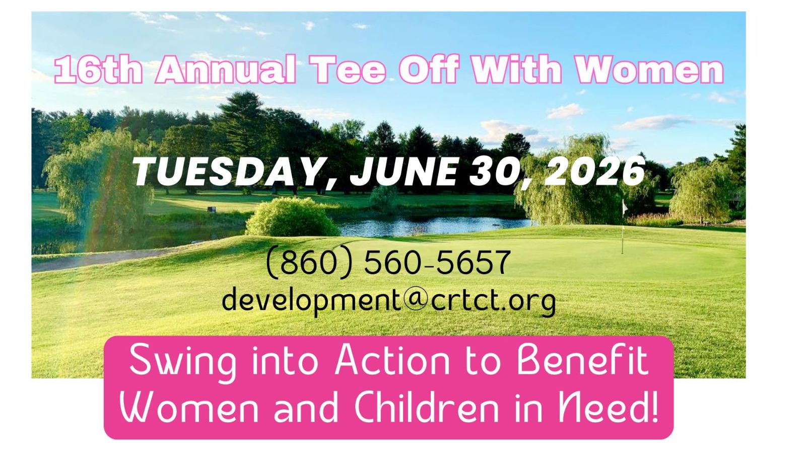 Join us on Tuesday, June 30, 2026, for CRT’s 16th Annual Tee Off for Women Golf Tournament, for a round of spectacular golf at the beautiful Tunxis Country Club in Farmington. This women-only event is a fun-filled day that includes camaraderie, games, contests, food, beverages, delicious dinner, and extraordinary raffle prizes.